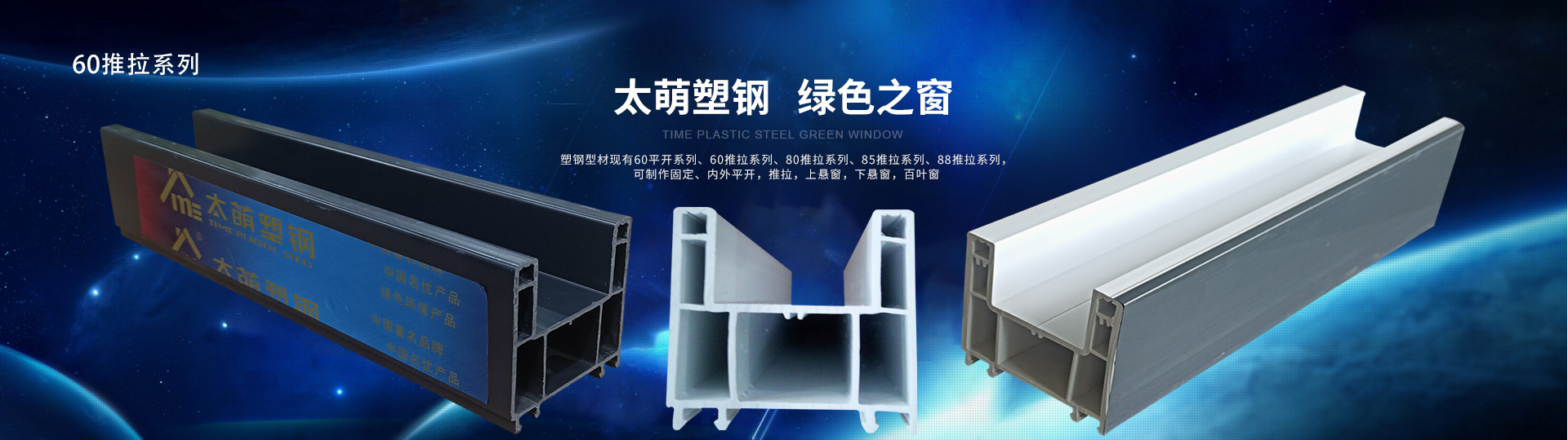 四川太萌開發生產的塑鋼型材現有60平開系列、60推拉系列、80推拉系列、85推拉系列、88推拉系列,可制作固定、內外平開,推拉,上懸窗,下懸窗,百葉窗,品種規格齊全